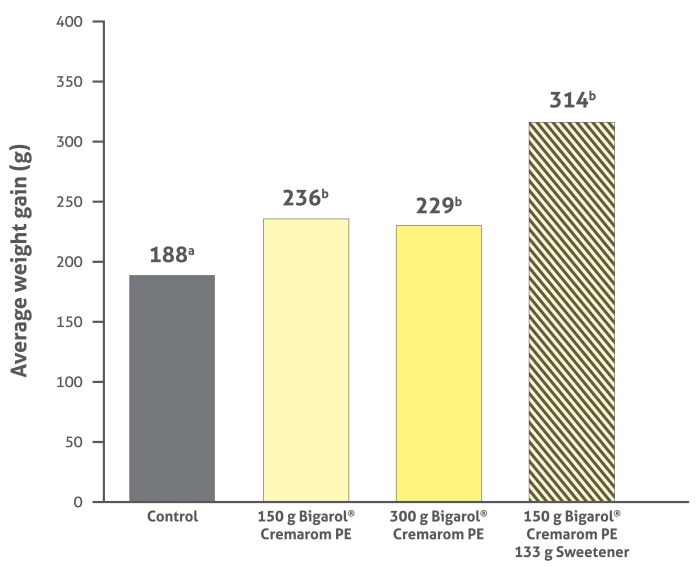 Adding Bigarol® Cremarom PE to the diet led to a significantly higher average daily feed intake and significantly increased average daily gains in weaned piglets
