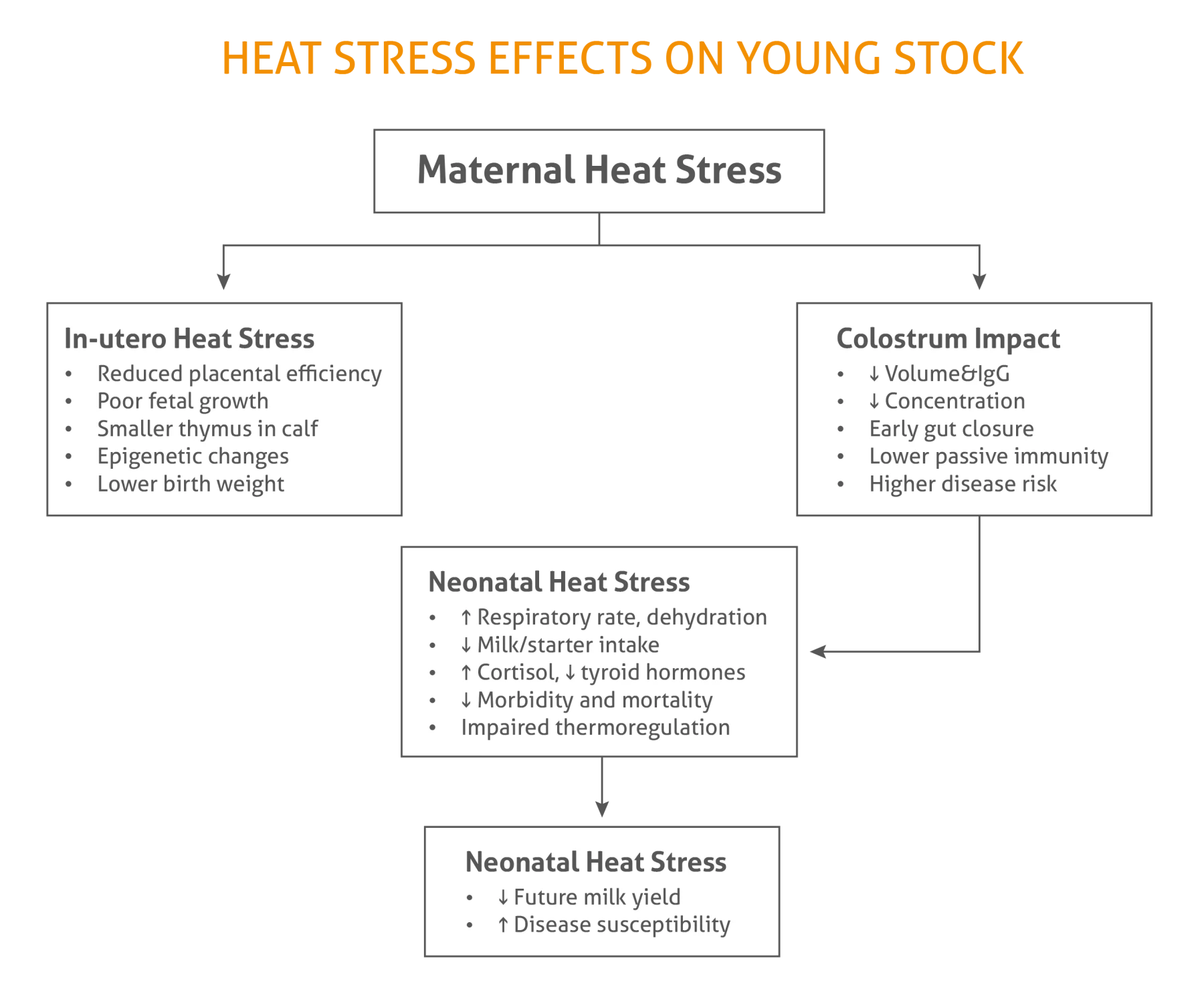 • The absorption efficiency of colostral immunoglobulins in calves born from heat-stressed dams is also lower.