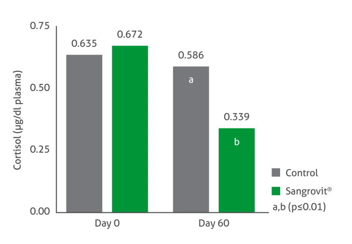 Fig. 1: Niveles de cortisol (ug/dL de plasma) de las vacas en el día 0 y el día 60.
