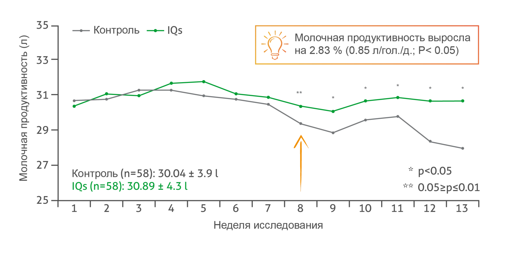 Фактические данные показали, что применение IQs повышает устойчивость молочных коров к повышенным температурам окружающей среды в сочетании с рационом, содержащим ДОН, и, следовательно, могут способствовать достижению как благополучия животных, так и стабильности производства.