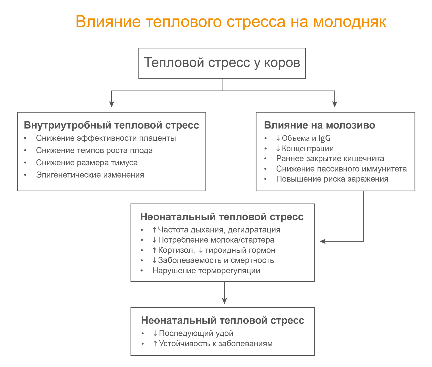 Молозиво — это не просто первое молоко, это первичная система иммунной защиты новорождённого. К сожалению, тепловой стресс на поздних сроках стельности у коров значительно снижает как объём, так и качество молозива. Исследования показали, что: